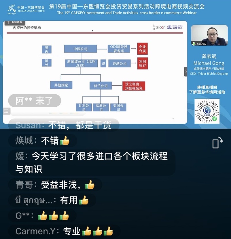 中國-東盟博覽會是中國商務部和東盟10國政府經貿主管部門及東盟秘書處共同舉辦的,具有特殊國際影響力的國家級重點展會。2022年4月28日下午,第19屆中國-東盟博覽會投資貿易系類活動-跨境電商視頻培訓活動成功舉行。卓佳瑞豐德永行政總裁龔彥斌先生受大會邀請,作為特邀嘉賓參與了專題分享。